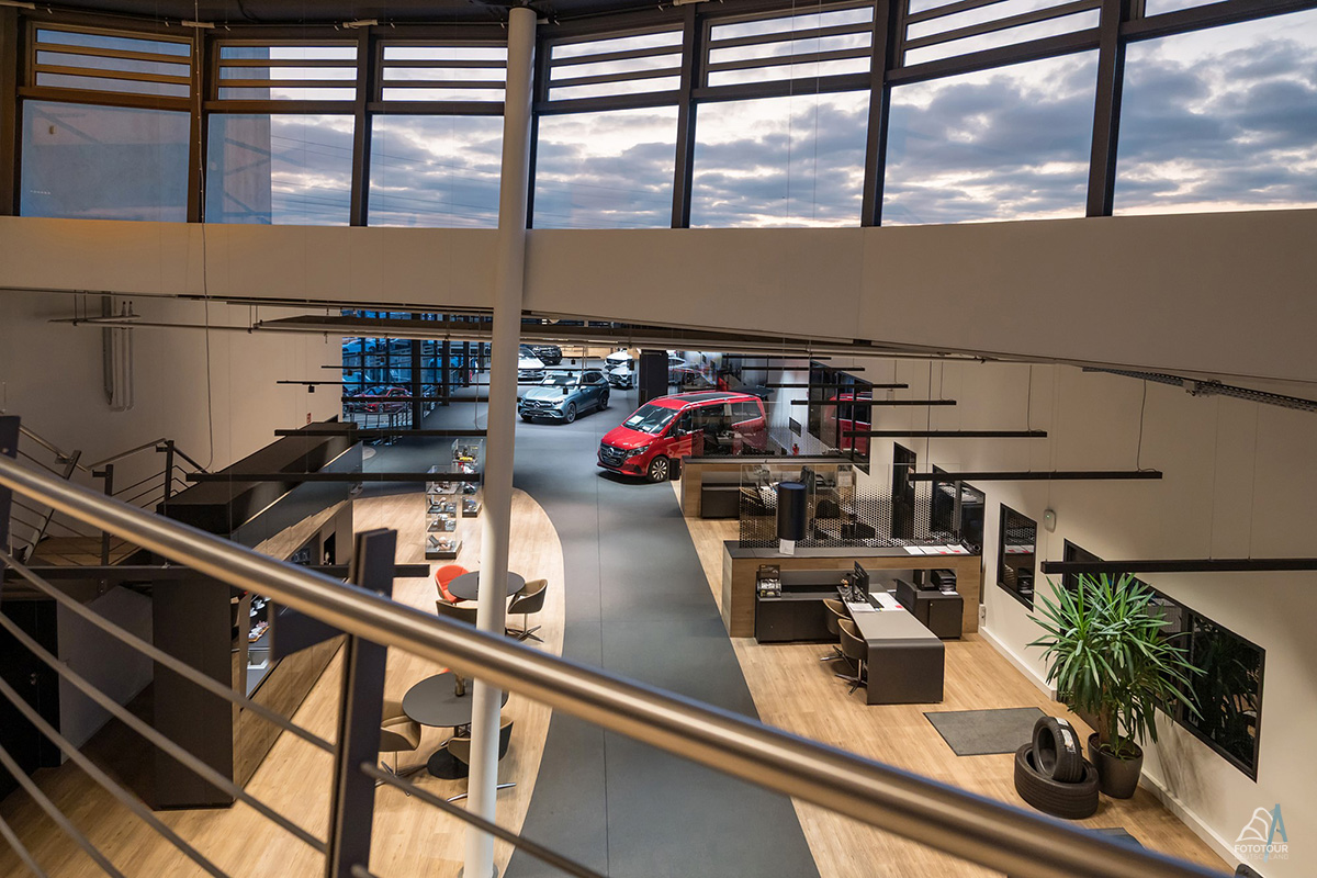 So entstanden hochwertige, stimmungsvolle Bilder, die die Eleganz und Wertigkeit der Mercedes-Autohäuser unterstreichen und sich ideal für Marketing, Website und Unternehmenskommunikation eignen.