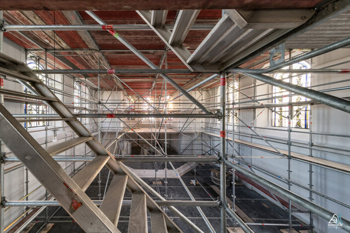 habe ich die Geschäftsführerin und ihr Team bei der Arbeit hoch über den Dächern von Montabaur porträtiert. Eine Besonderheit sind Gerüste, die sich über den gesamten Raum erstrecken.